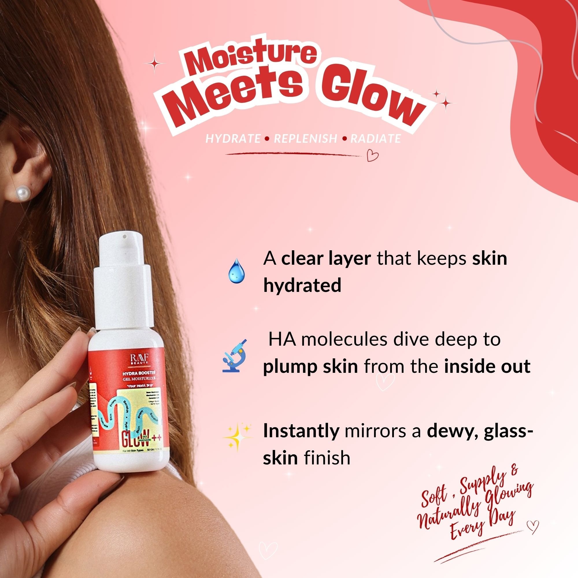Hydra Booster Gel Moisturizer – Glow++ is a refreshing, fast-absorbing gel moisturizer designed to deeply hydrate, strengthen the skin barrier, and enhance your natural glow. Inspired by the purity of ocean freshness, this lightweight formula instantly replenishes moisture while leaving your skin smooth, plump, and radiant.